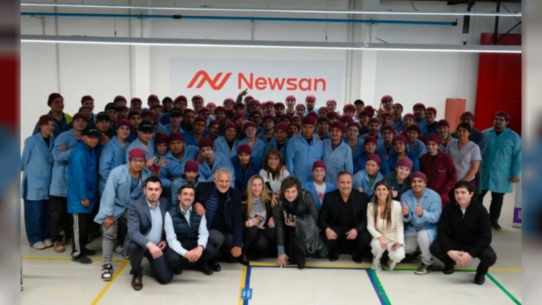 La primera actividad que tuvo Milei en suelo fueguino fue una recorrida por la planta de Newsan, productora de electrodomésticos de las marcas Atma, Noblex y Phlico: «Pude ver todo el trabajo tecnológico que incorporan, la verdad que algo verdaderamente interesante», comentó al respecto en la entrevista. (NA)