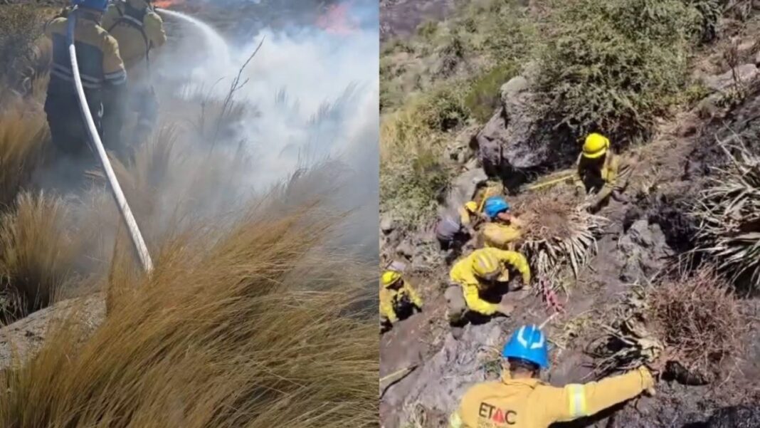 Los videos registrados en plena montaña muestran el trabajo cuerpo a cuerpo contra el fuego en el Parque Nacional Quebrada del Condorito, donde el sector oeste continúa con actividad y mantiene en vilo a toda la región.