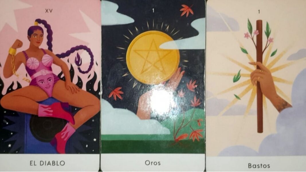 Las cartas dicen que la persona ha estado sumida en comportamientos tóxicos, que pueden ser: miedos. Obsesiones. Vicios. La carta del diablo habla de ataduras y apegos a personas, cosas, situaciones que no han contribuido al crecimiento de la persona, pero también, en su aspecto más positivo indica que se tiene la fuerza y la energía necesaria para romper el círculo vicioso y las ataduras, para salir de la negatividad y enfrentarse con uno mismo, con la imagen que nos devuelve el espejo, con las cosas que generan dependencias insalubres. Es momento de tomar acción con determinación para volver a empezar. Una renovación, un nuevo camino se abre como una maravillosa oportunidad de sanar, de cambiar, de tener una vida plena, abundante y feliz. Las predicciones que trae el tarot son muy buenas y auspiciosas. Los nuevos inicios están al alcance de la mano, pero todo dependerá finalmente de lo que decida la persona: quedarse en donde está, o aprovechar lo nuevo que la vida le ofrece como un regalo del cielo. Dios ayuda, pero respeta las decisiones de cada uno, da la libertad para elegir el camino que se quiere seguir.