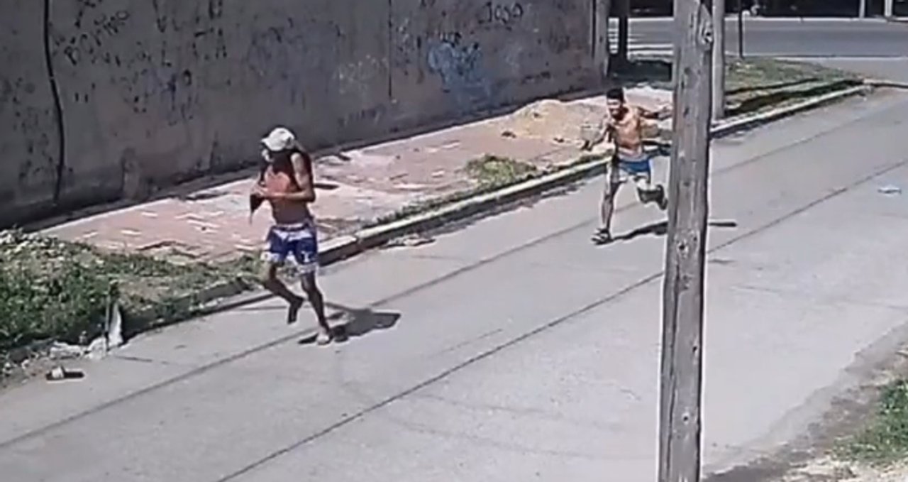En las imágenes se ve a la víctima corriendo, sin remera y perdiendo el calzado en la huida. El tirador lo persiguió a corta distancia, gatillando casi una docena de veces.