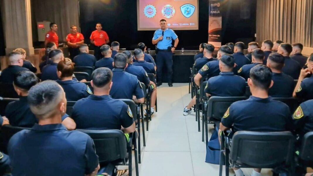 Casi cien policías que prestarán servicio durante el Operativo Verano recibieron una capacitación en Villa Carlos Paz. La actividad contó además con la participación del director de la Departamental Punilla, Hernán Guayanes y los jefes Andrés Aguirre, Silvio Díaz y Sergio Chávez del Departamento de Unidades de Alto Riesgo.