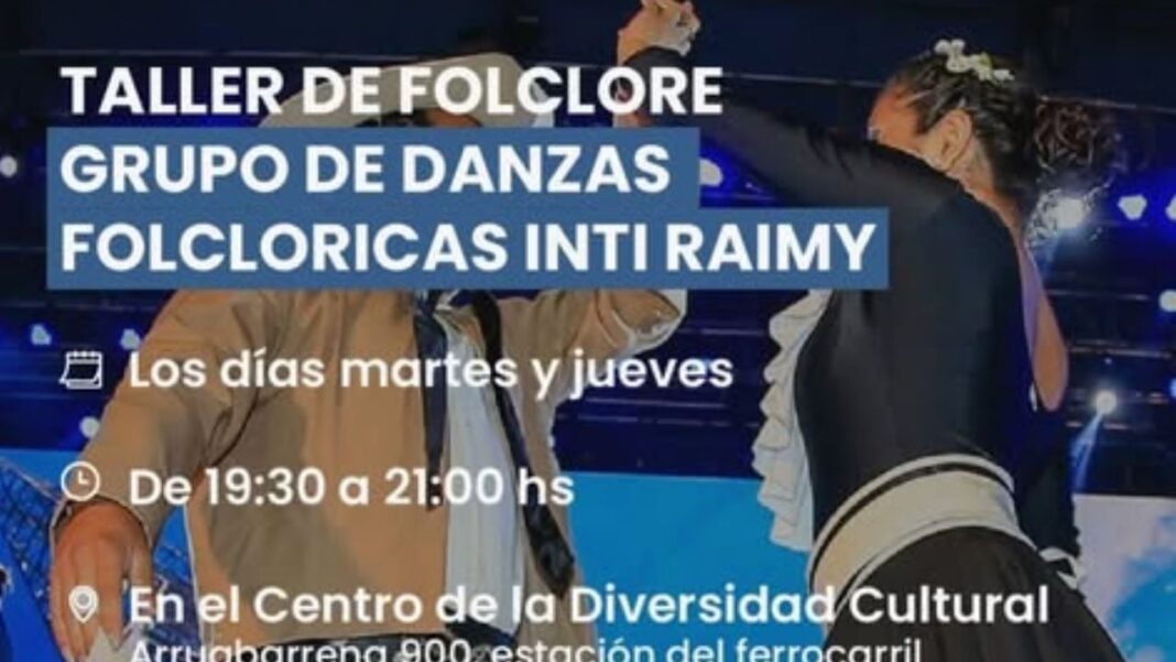 Entre las propuestas se destaca el Taller de Folclore del Grupo de Danzas Folclóricas Inti Raimy, que se dicta los días martes y jueves de 19.30 a 21 horas en el Centro de la Diversidad Cultural, ubicado en Arruabarrena 900, estación del ferrocarril. El espacio, de carácter arancelado, invita a conectarse con las raíces culturales a través de la danza y la música tradicional. Las personas interesadas pueden solicitar informes e inscribirse comunicándose al 3548 432 615.