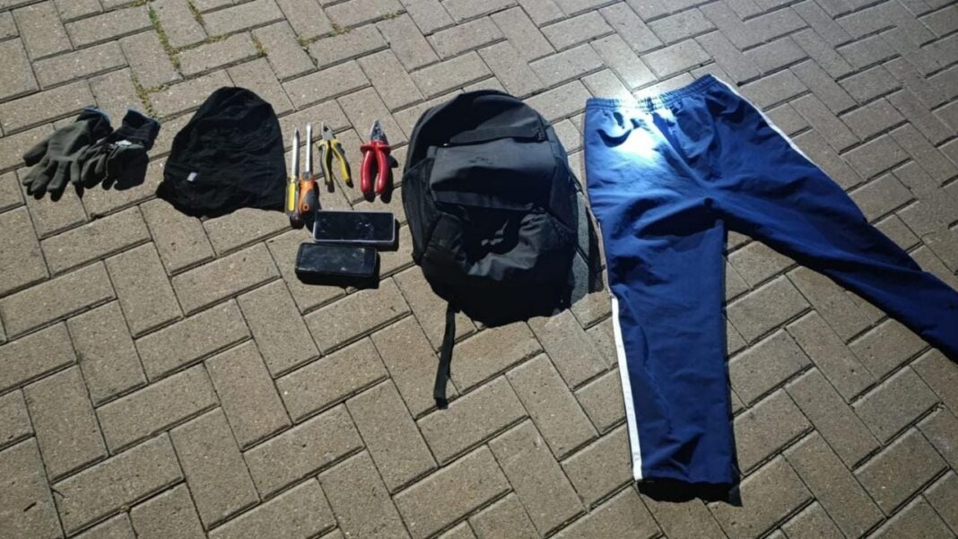 Durante el procedimiento se secuestró una mochila que contenía un pasamontaña, dos teléfonos celulares, guantes y diversas herramientas. Al momento de la reducción, uno de los efectivos resultó con escoriaciones y debió ser asistido en el Hospital Arturo Illia.