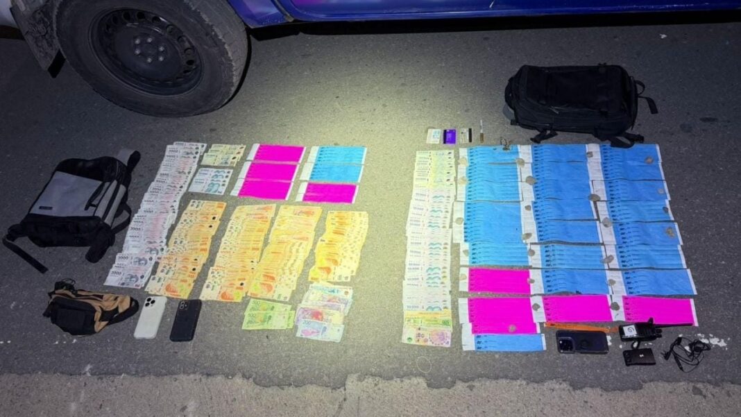 En una primera intervención, efectivos policiales aprehendieron a un hombre y una mujer que tenían en su poder treinta tickets falsificados, dos teléfonos celulares y una suma de dinero en efectivo, entre otros elementos de interés para la causa.