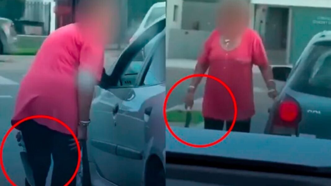 Parte de la secuencia del hecho quedó registrada en un video grabado por testigos, que no salían del asombro al ver que la señora portaba una cuchilla de gran tamaño mientras discutía cara a cara con el otro conductor.