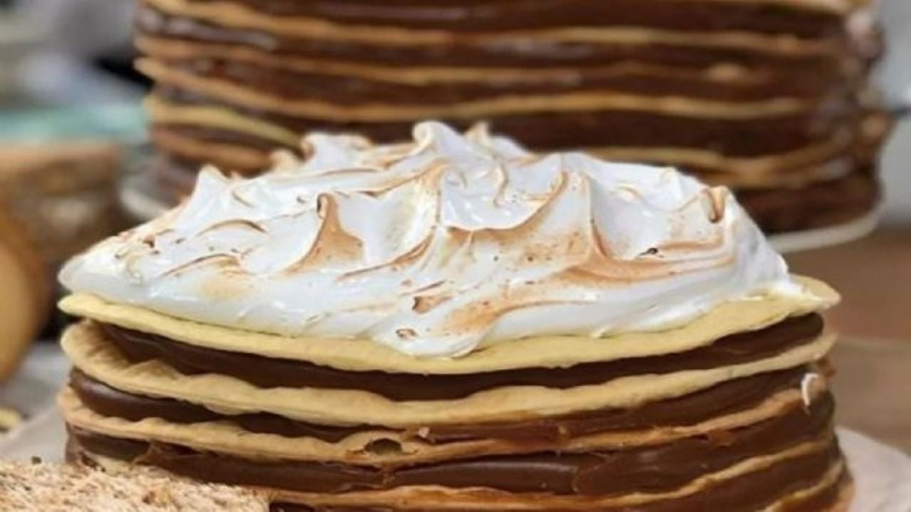 La Torta Rogel es un clásico de la repostería argentina, reconocida por sus delicadas capas de masa crujiente y su irresistible relleno de dulce de leche, coronada con un merengue suave y brillante.