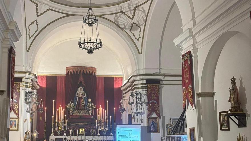 La ermita de las Angustias, sede de los titulares de la hermandad, presenta estos días un ambiente especialmente preparado para la celebración de los cultos, con colgaduras, ornamentación y un montaje que invita al recogimiento, la veneración y la oración.