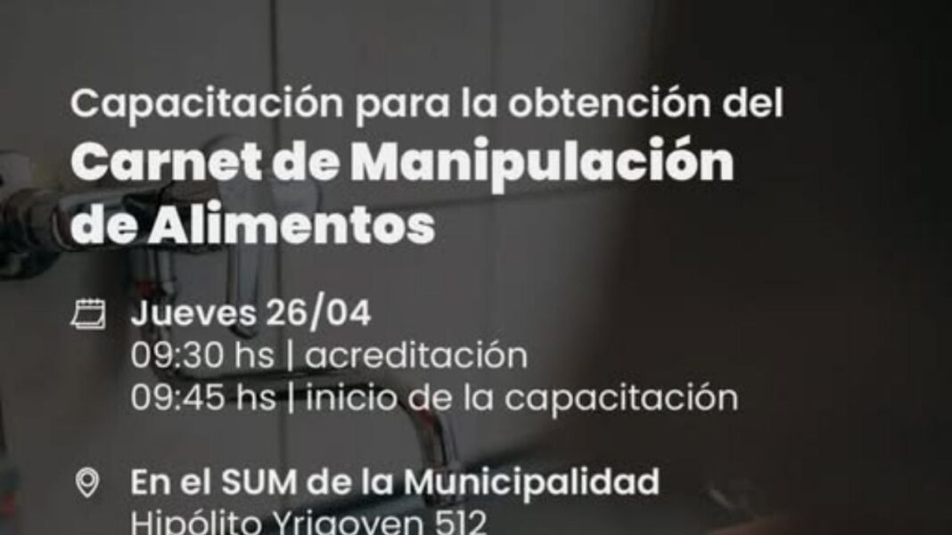 Huerta Grande. El municipio de Huerta Grande invitó a los vecinos a sumarse a un nuevo curso de capacitación para la obtención del carnet de manipulación de alimentos.